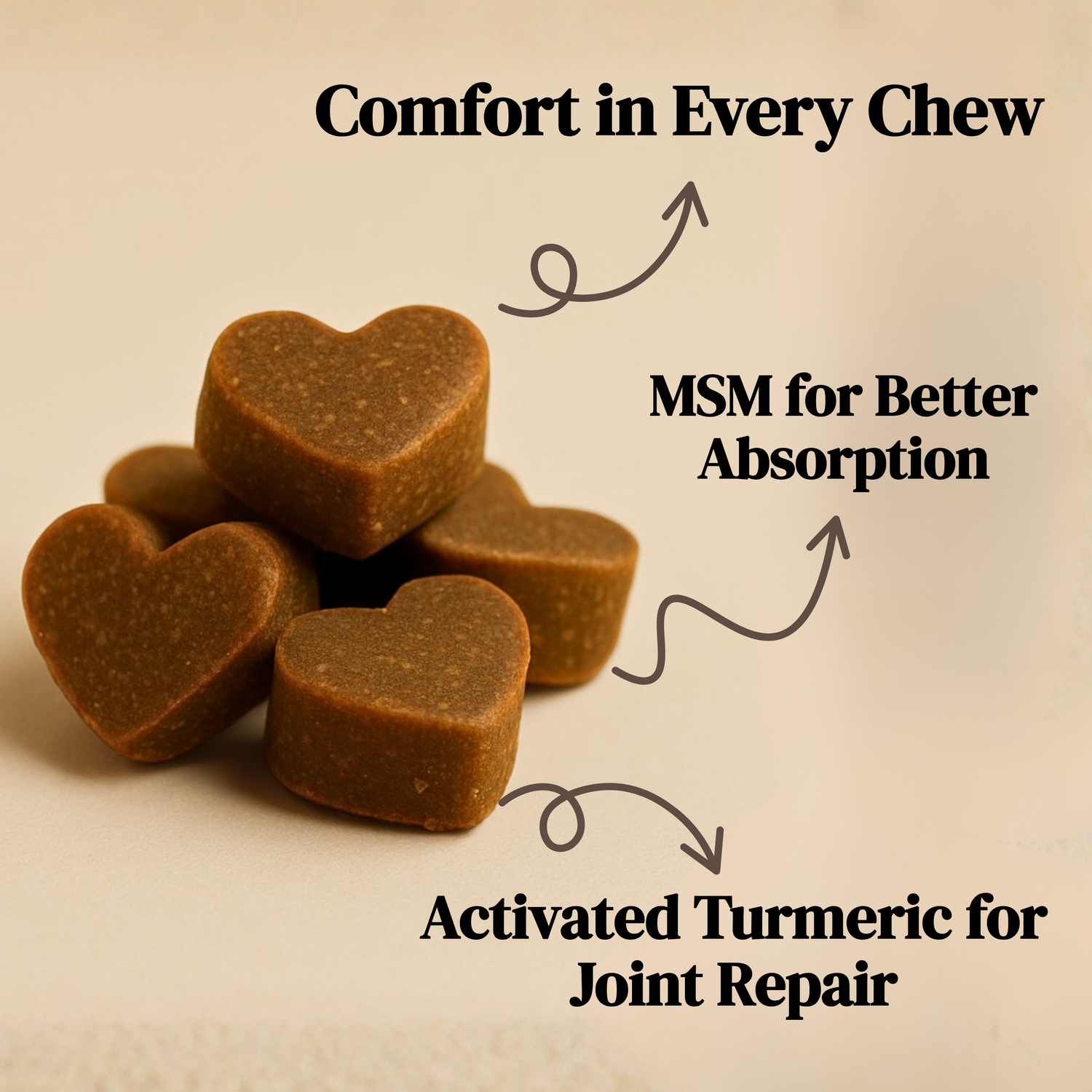 Our MSM-enhanced turmeric formula delivers powerful inflammation relief designed specifically for small breed joint support.