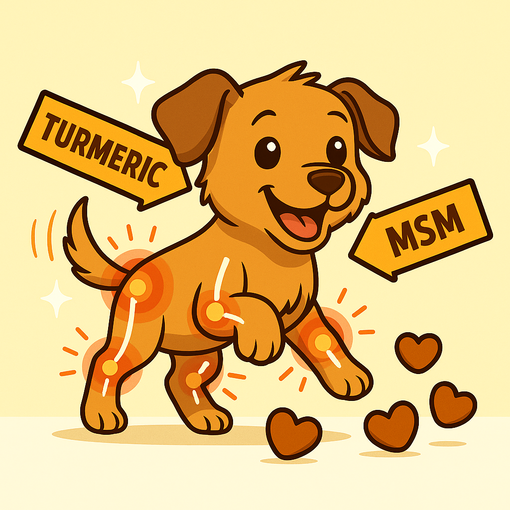 We use Activated Turmeric + MSM designed to support comfort and confidence in movement, especially for small dogs who jump, climb, and wiggle all day.